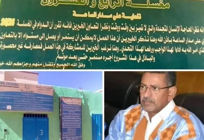 أعلن عمدة بلدية عرفات السيد محمد محمود ولد أحمد جدو عن تقديمھ مليونين أوقية قديمة سنويا لدعم مغسلة مسجد الرابع والعشرين،